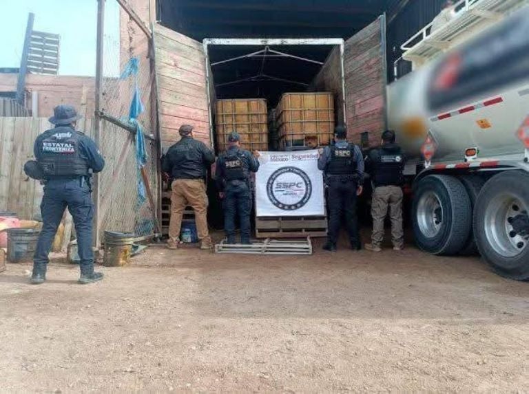 Nogales, Sonora.- Este jueves 22 de enero de 2026, en un operativo conjunto en el que participaron elementos de la Guardia Nacional, la Secretaría de la Defensa Nacional (Defensa), Aduanas y la Secretaría de Seguridad y Protección Ciudadana (SSPC), se logró catear un inmueble y posteriormente asegurar aproximadamente 15 mil litros de hidrocarburo, además de motobombas, contenedores, una cisterna y seis tractocamiones.