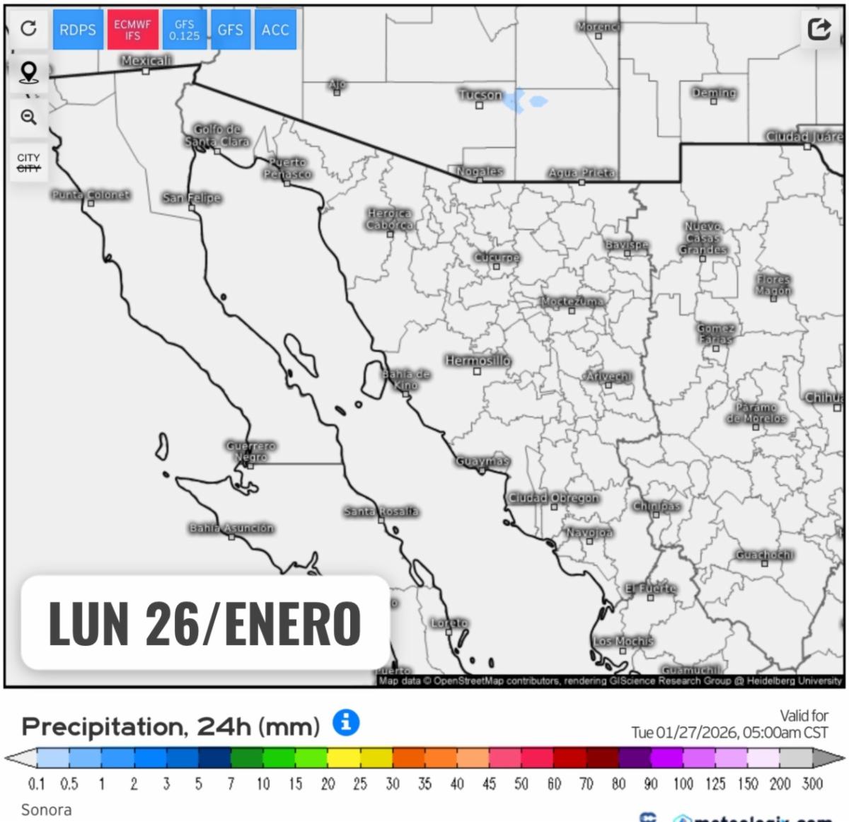 Hermosillo, Sonora; 26 de enero de 2026.- La Coordinación Estatal de Protección Civil (CEPC) en Sonora informa que se esperan condiciones meteorológicas que vayan tornándose más estables a lo largo de la semana sobre el estado.