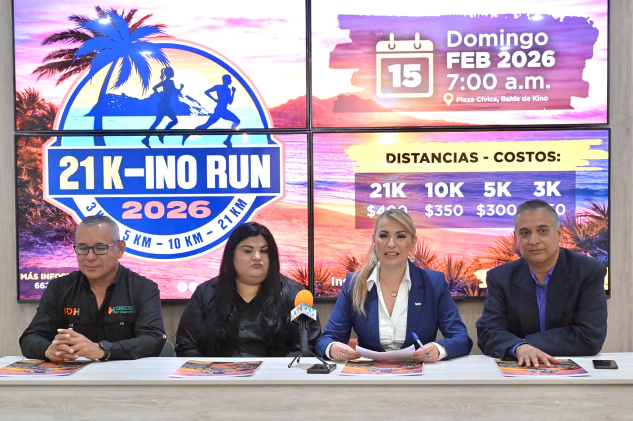 Hermosillo, Sonora; a 29 de enero de 2026.- Autoridades municipales, organizadores y representantes de la comunidad de Bahía de Kino anunciaron la realización de la tercera edición de la carrera “21K-ino Run”, que se llevará a cabo el domingo 15 de febrero, a partir de las 7:00 horas, en la playa de Bahía de Kino.