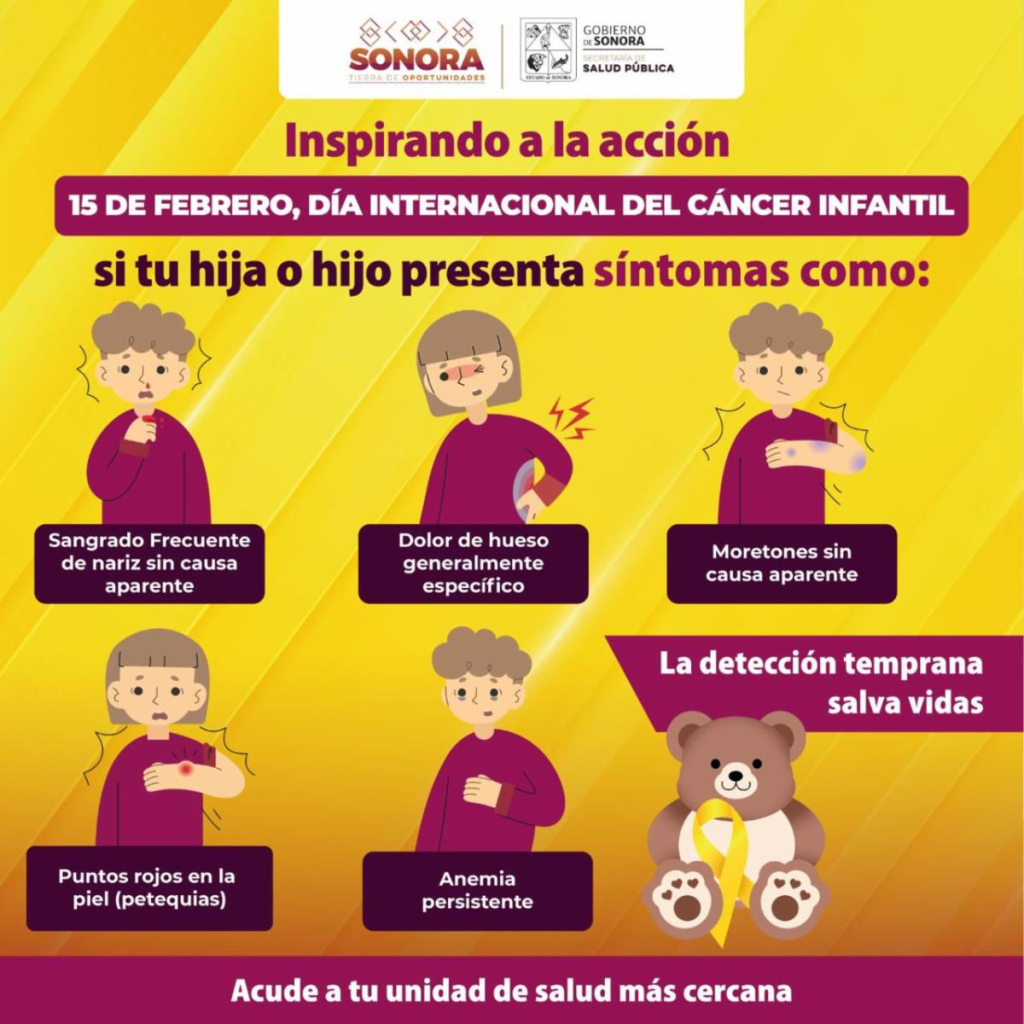 Hermosillo, Sonora; 3 de febrero de 2026.– En el marco del Día Internacional de la Lucha Contra el Cáncer Infantil, la Secretaría de Salud Pública (SSP) del Gobierno de Sonora reiteró su compromiso con la salud de niñas y niños que enfrentan esta enfermedad, la cual es curable si se detecta de manera oportuna.