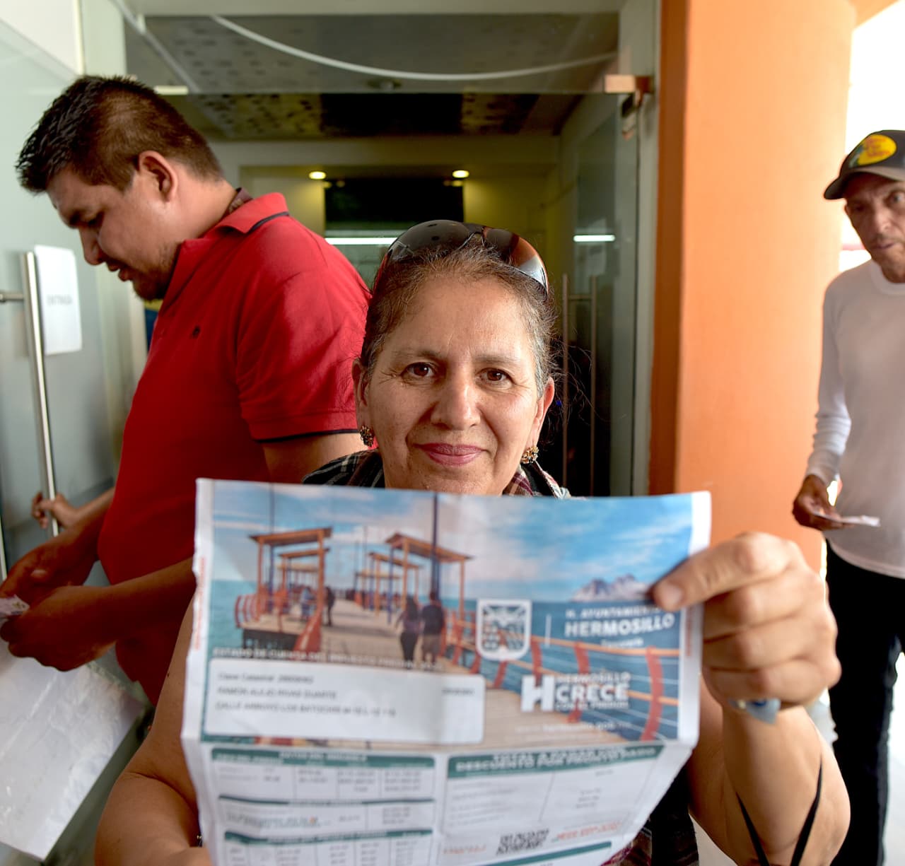 La funcionaria municipal recordó a la ciudadanía hermosillense que el pago oportuno de contribuciones como el predial hace posible que el Gobierno Municipal obtenga recursos propios para invertirlos en obras y servicios en beneficio de todas y todos.