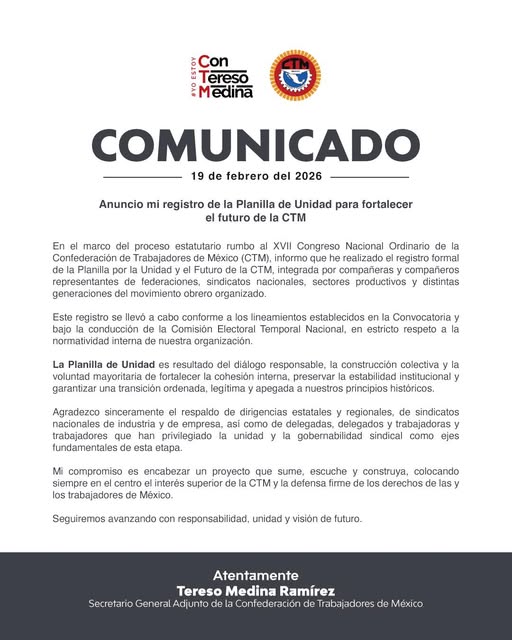 Diversos contingentes sindicales se trasladan a la Ciudad de México para expresar su respaldo firme y decidido a Tereso Medina, en el marco del proceso interno que vive la CTM.