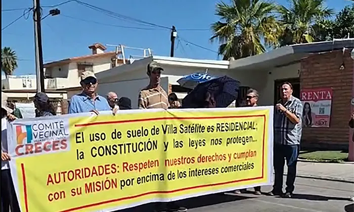 Residentes de la colonia Villa Satélite y de alrededores se manifestaron este miércoles en el cruce del bulevar Colosio y la calle Real del Arco, en demanda de que se respete el uso de suelo del sector que es habitacional y no comercial.