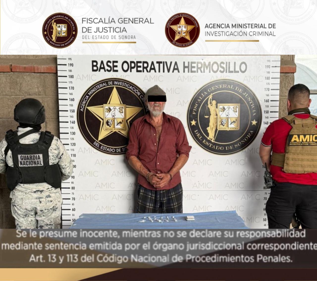 Hermosillo, Sonora, 1 de marzo de 2026.- La Fiscalía General de Justicia del Estado de Sonora (FGJES), en coordinación con la Agencia Ministerial de Investigación Criminal (AMIC), la Policía Estatal de Seguridad Pública (PESP), la Policía Municipal (PM) y la Secretaría de la Defensa Nacional (DEFENSA), ejecutó una orden de cateo con resultado de una persona detenida y droga asegurada en Hermosillo.
