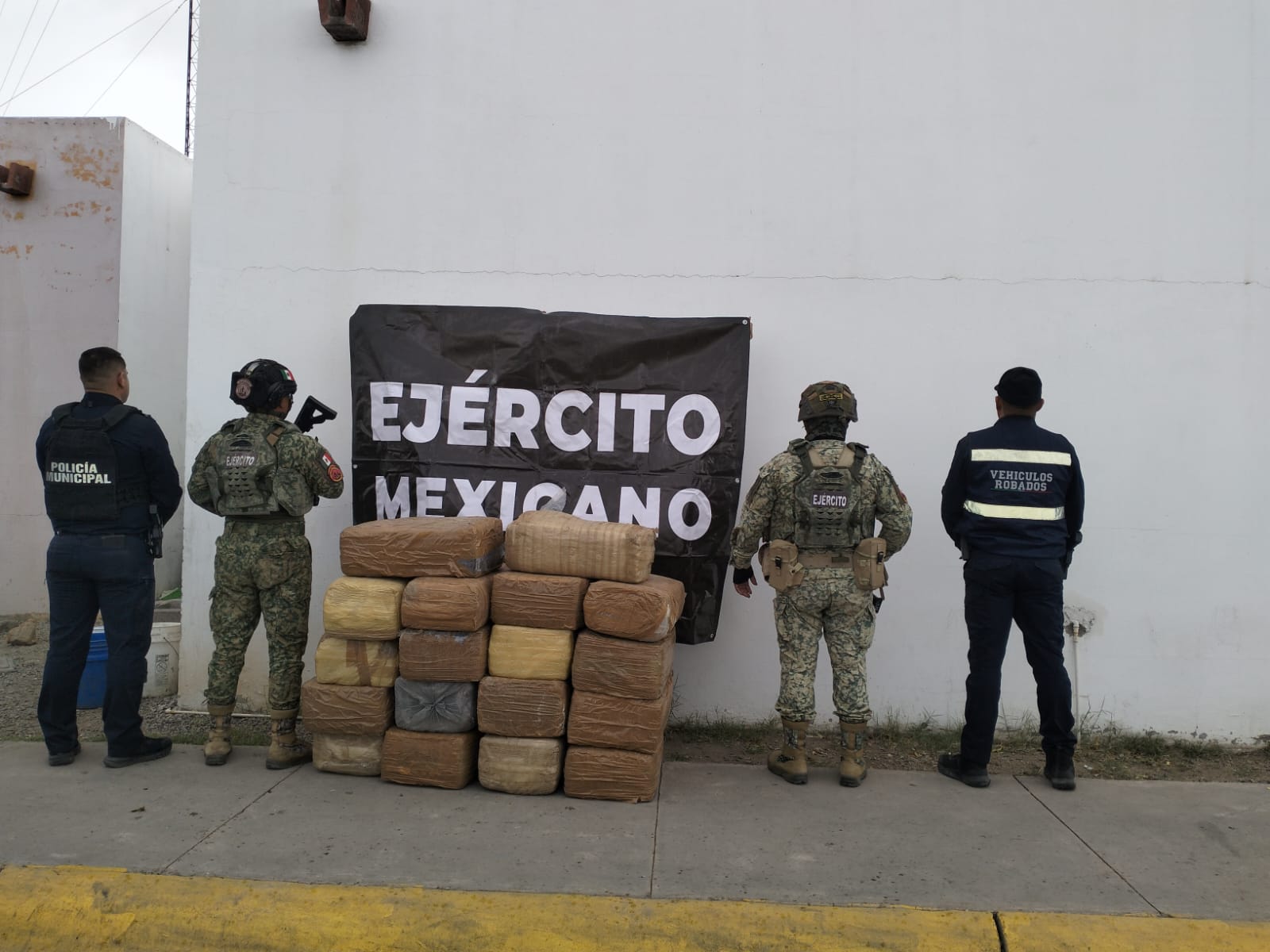 La Colorada, Sonora.— Personal del Ejército Mexicano, en coordinación con elementos de la Policía Municipal, aseguró 18 paquetes con hierba verde y seca con características similares a la marihuana, durante reconocimientos terrestres realizados el día de ayer en un camino de terracería en el municipio de La Colorada.