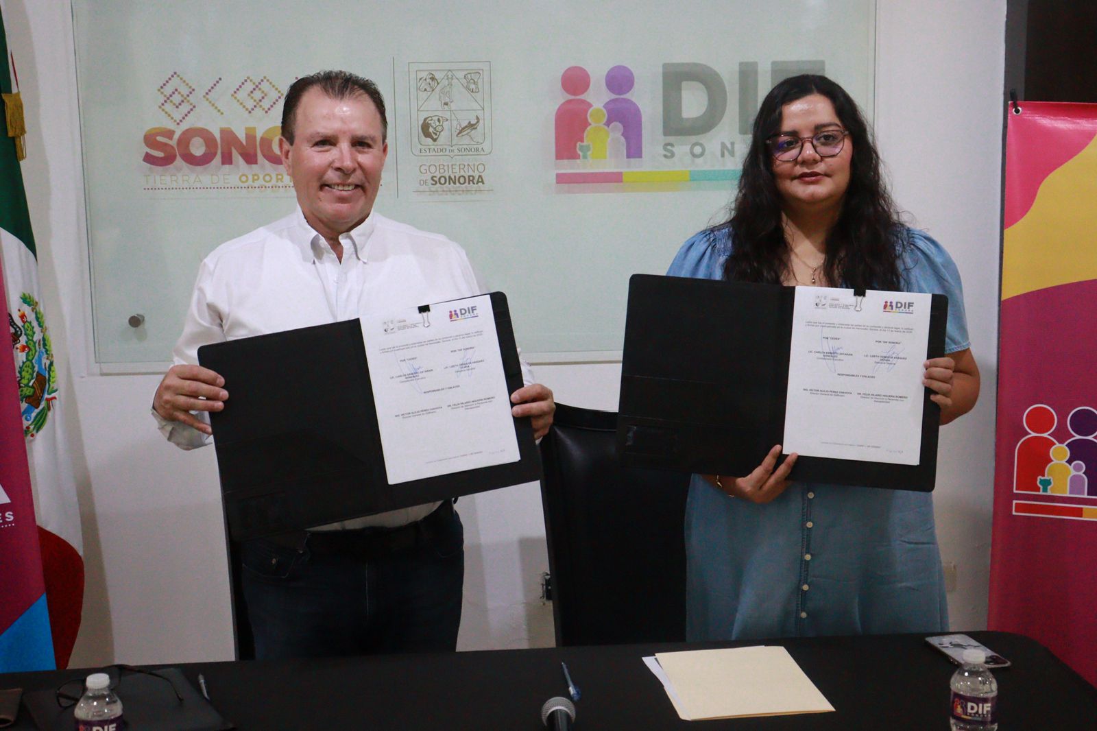 El acuerdo fue formalizado mediante la firma de Lizeth Vásquez Ochoa y Carlos Zatarain González, titulares de DIF Sonora y CEDES respectivamente, quienes refrendaron la coordinación entre ambas instituciones para fortalecer programas que favorezcan la rehabilitación y el desarrollo integral de la niñez sonorense.