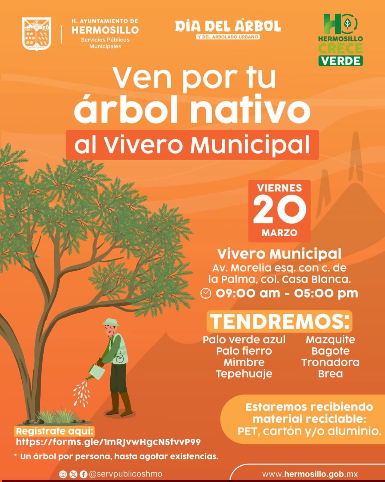 Hermosillo, Sonora; 19 de marzo, 2026.- Una invitación a las y los hermosillenses a participar este viernes 20 de marzo en la jornada gratuita de donación de árboles nativos en el Vivero Municipal realizó Amparo Fontanot Ochoa.