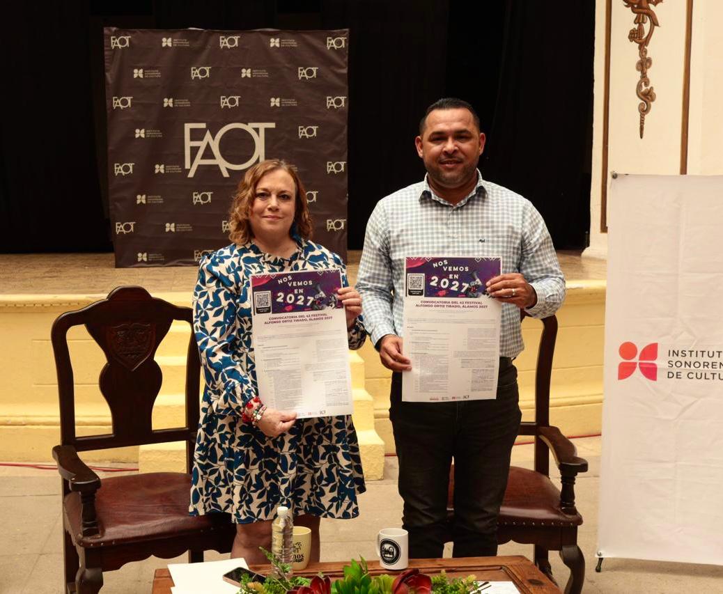 Álamos, Sonora; 20 de marzo de 2026.– El Gobierno de Sonora, a través de la Secretaría de Educación y Cultura (SEC) y el Instituto Sonorense de Cultura (ISC), en colaboración con el H. Ayuntamiento de Álamos, presentó la convocatoria de la edición 42 del Festival Alfonso Ortiz Tirado (FAOT) 2027.