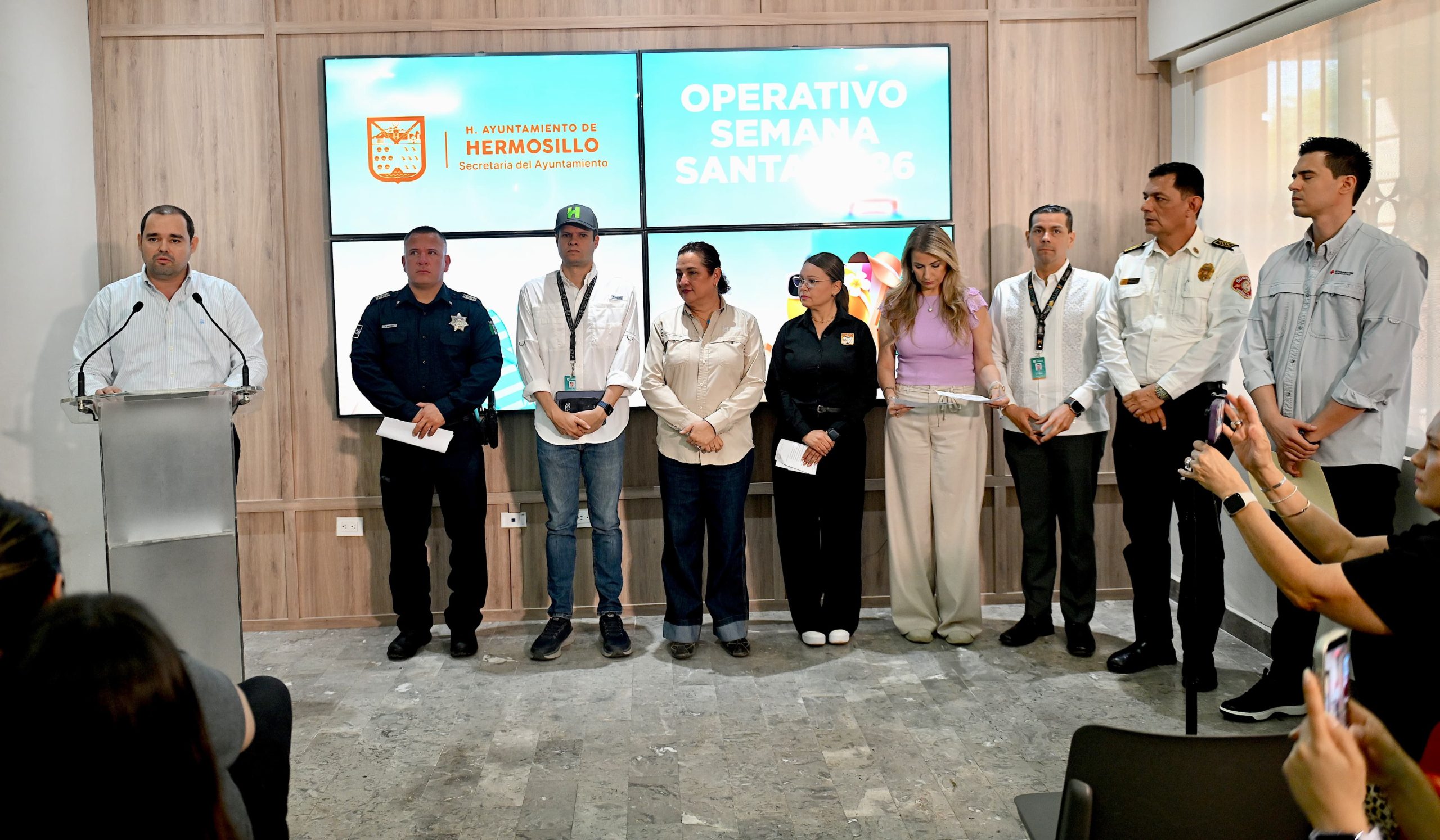 El funcionario municipal estuvo acompañado por las y los titulares de la Policía Preventiva y Tránsito Municipal; Servicios Públicos Municipales; Salud Pública Municipal, Bomberos de Hermosillo, Coordinación de Protección Civil Municipal, Dirección de Inspección y Vigilancia, Dirección de Desarrollo Turístico y un representante de Cruz Roja Hermosillo, quienes compartieron detalles de sus actividades específicas.