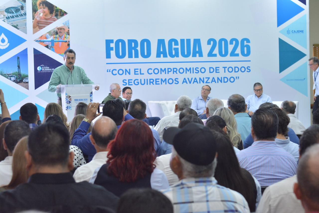 Con el objetivo de coordinar esfuerzos para lograr el uso eficiente, racional y sostenible del agua, garantizar el abasto de agua como un derecho humano, responder a las necesidades actuales del municipio, del estado y el país, así como transformar la visión sobre la gestión de este recurso y crear conciencia en la ciudadanía sobre el cuidado del vital líquido y su correspondiente pago, se llevó a cabo en Cajeme el Foro Agua 2026 “Con el compromiso de todos seguiremos avanzado”, en el que participaron expertos en el tema, autoridades de los tres niveles de gobierno, empresarios, académicos, agricultores, organizaciones sociales y ciudadanos.