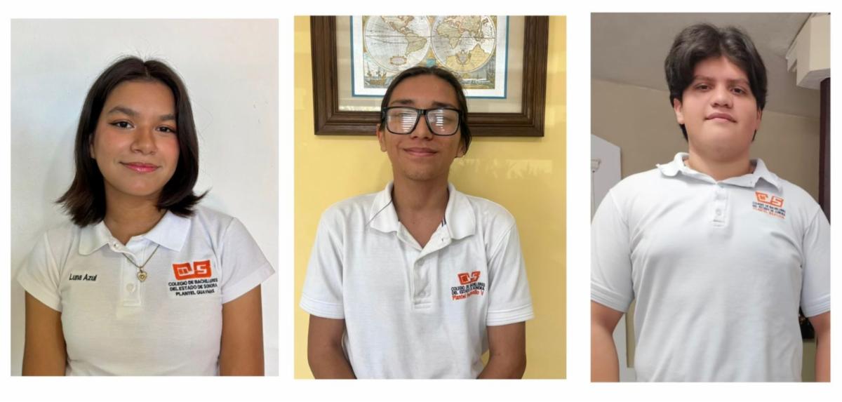 Luna Azul Villegas Galaz, del plantel General José María Maytorena Tapia de Guaymas; Santiago López Mendoza, del plantel Hermosillo 5; y Joaquín Emilio Rivas Menchaca, de Navojoa, integran la delegación estatal.