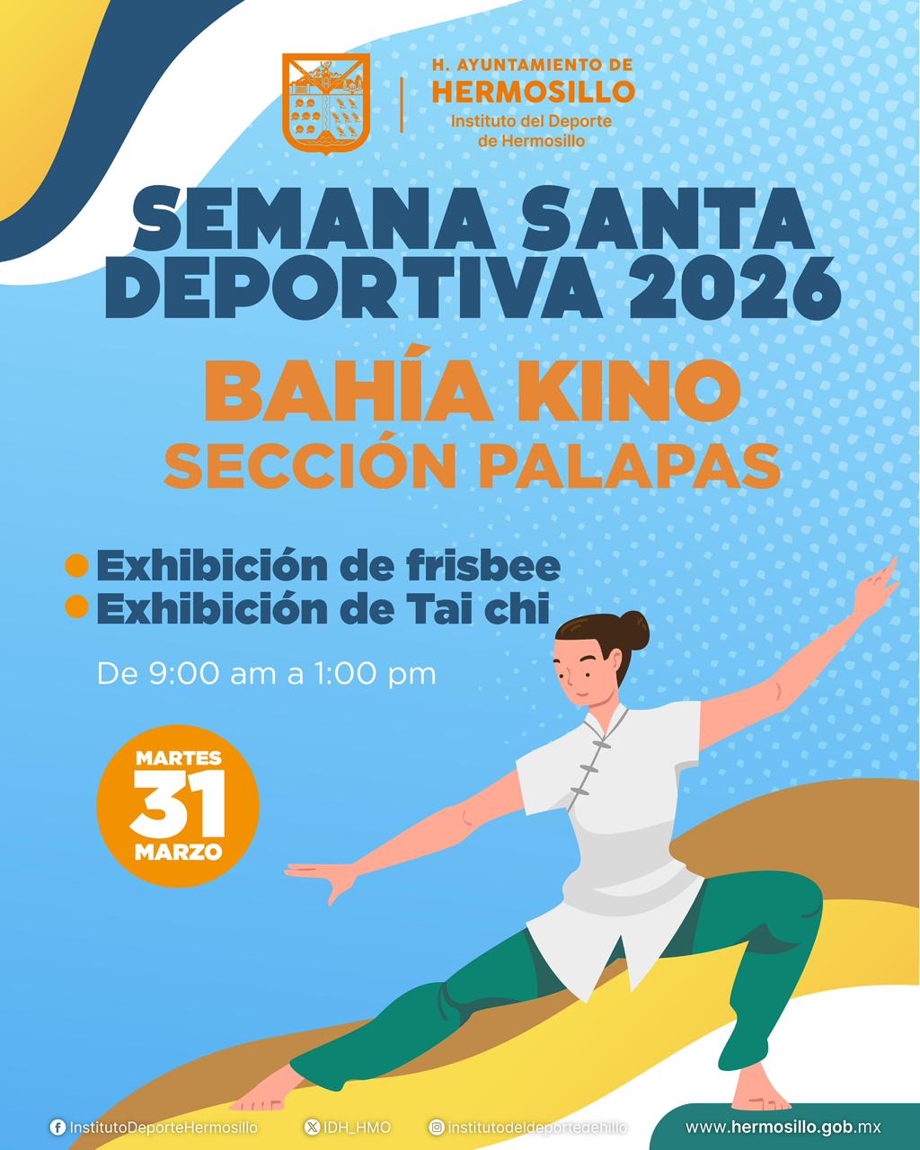 Habitantes y visitantes de Bahía de Kino podrán disfrutar el martes 31 de marzo exhibiciones de frisbee y sesiones de taichí frente al entorno natural que caracteriza a este destino, en una jornada pensada para relajarse, activarse y convivir en comunidad.