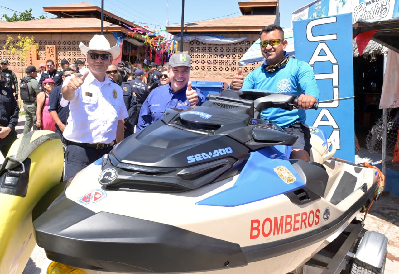 En este operativo de Semana Santa 2026, el Departamento de Bomberos incorporó la moto acuática entregada, con capacidad de 230 caballos de potencia, espacio para transportar a tres personas y la posibilidad de arrastre de trineo de rescate, mediante el uso de una camilla especial para personas que presenten emergencias en el agua.