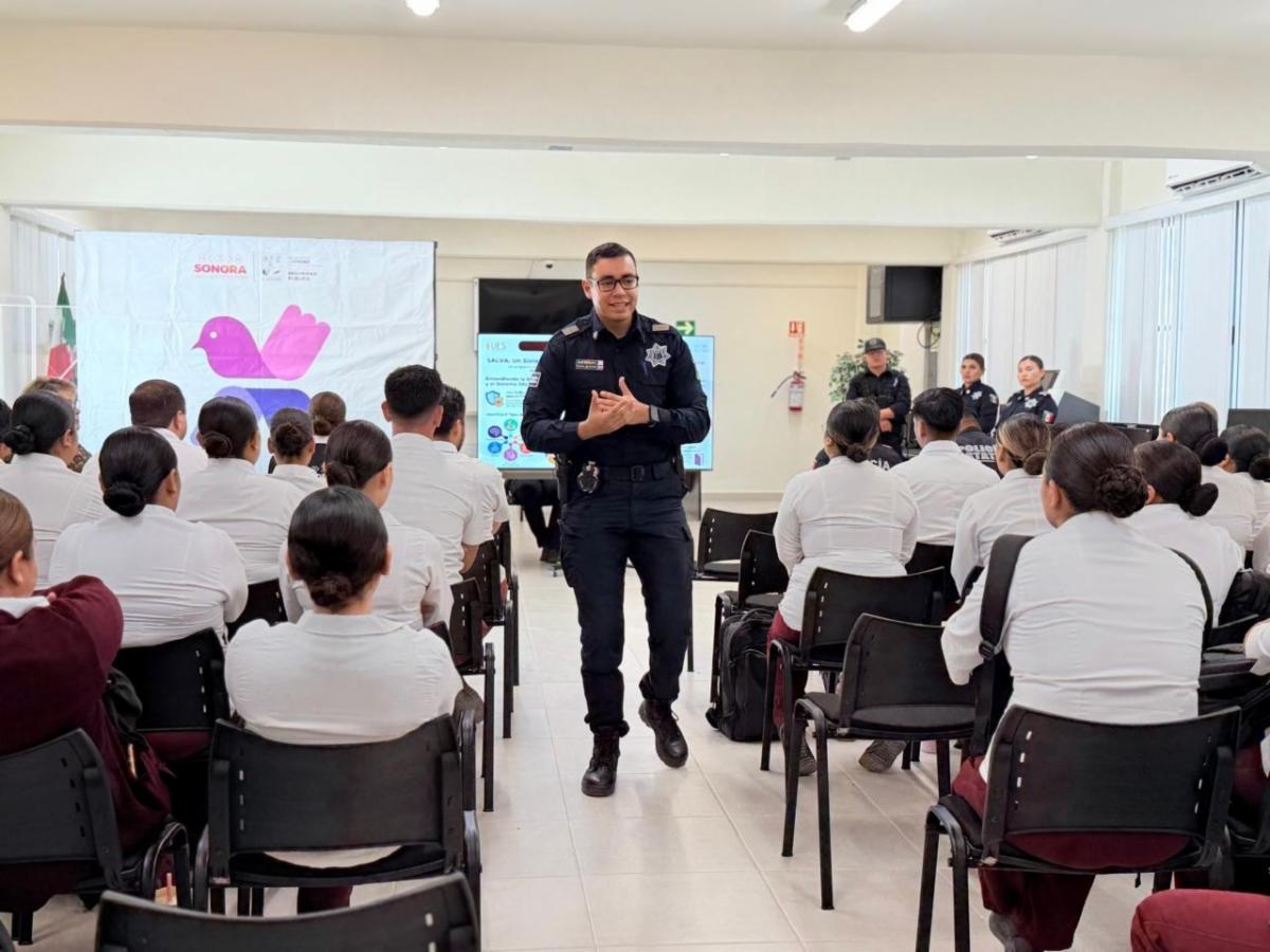 Benito Juárez, Sonora; 17 de abril de 2026.- Por ser la prevención una responsabilidad de todos, la Secretaría de Seguridad y Protección Ciudadana (SSPC) orientó a estudiantes de la Universidad Estatal de Sonora (UES) campus Benito Juárez sobre cómo identificar delitos como la violencia, extorsión telefónica y actividades delictivas a través de redes sociales, ofreciéndoles herramientas para que nos sean víctimas.