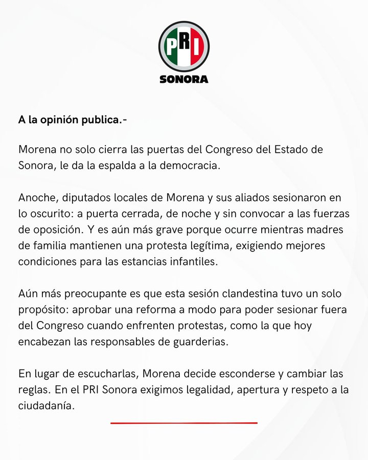 En el PRI Sonora exigimos legalidad, apertura y respeto a la ciudadanía.