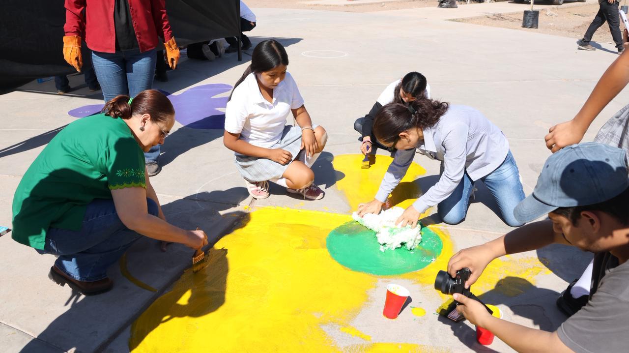 Guaymas, Sonora, 22 de abril de 2026.- Como una alternativa de expresión colectiva donde el arte, el deporte y cuidado del medio ambiente se unen, este miércoles se realizó en la comunidad de Vícam la Jornada Nacional de Tequios por la Tierra y Murales Mundialistas.