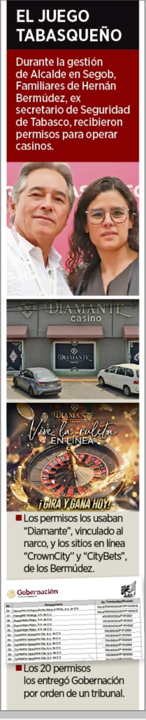 La empresa Diamante Casino operaba con ese mismo permiso, y la semana pasada, la Oficina de Control de Bienes en el Extranjero del Departamento del Tesoro publicó sanciones, por sus nexos con el Cártel del Noreste.