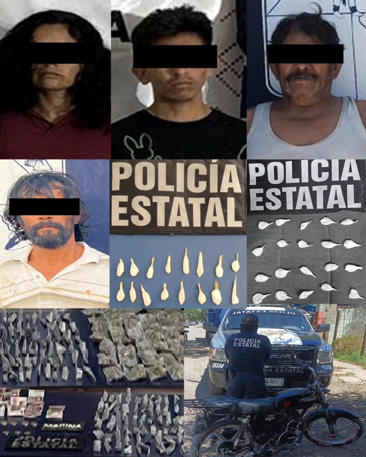En el mismo municipio, por la colonia Matías Méndez, la Policía Estatal realizó la detención de Jorge “N”, de 65 años de edad, al asegurarle 16 envoltorios con narcótico, mientras que en Progresista incautaron 10 dosis con sustancia granulada a Jesús “N”, de 26 años.