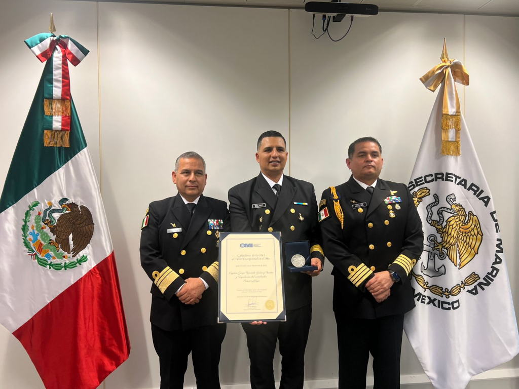Por esta acción, el pasado 2 de diciembre, el capitán Galaviz Fuentes viajó hasta Londres, Inglaterra, para, a nombre de sus compañeros, recibir el honroso premio que otorga la prestigiosa International Maritime Organization (IMO, por sus siglas en inglés), durante la 109 sesión del Comité de Seguridad Marítima.